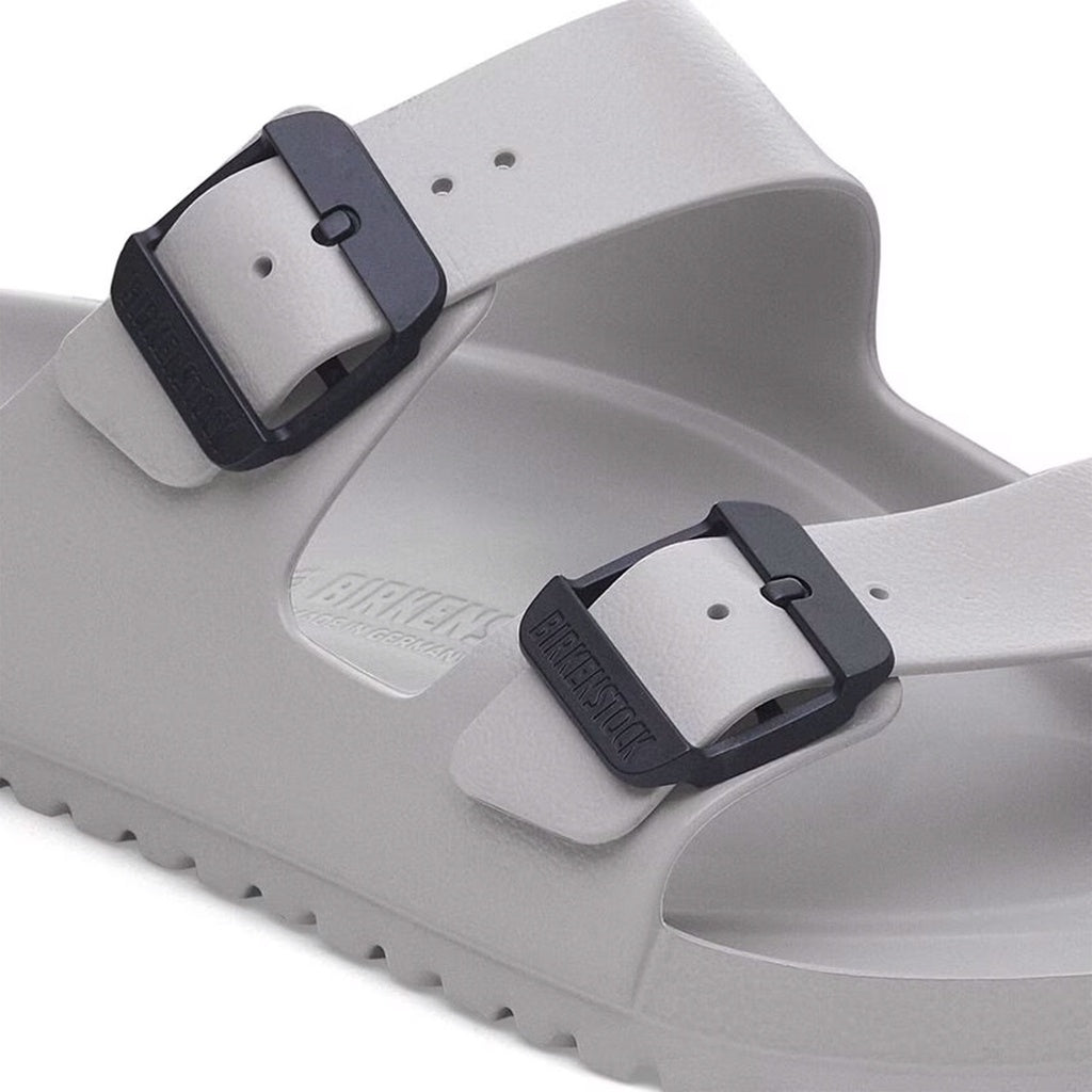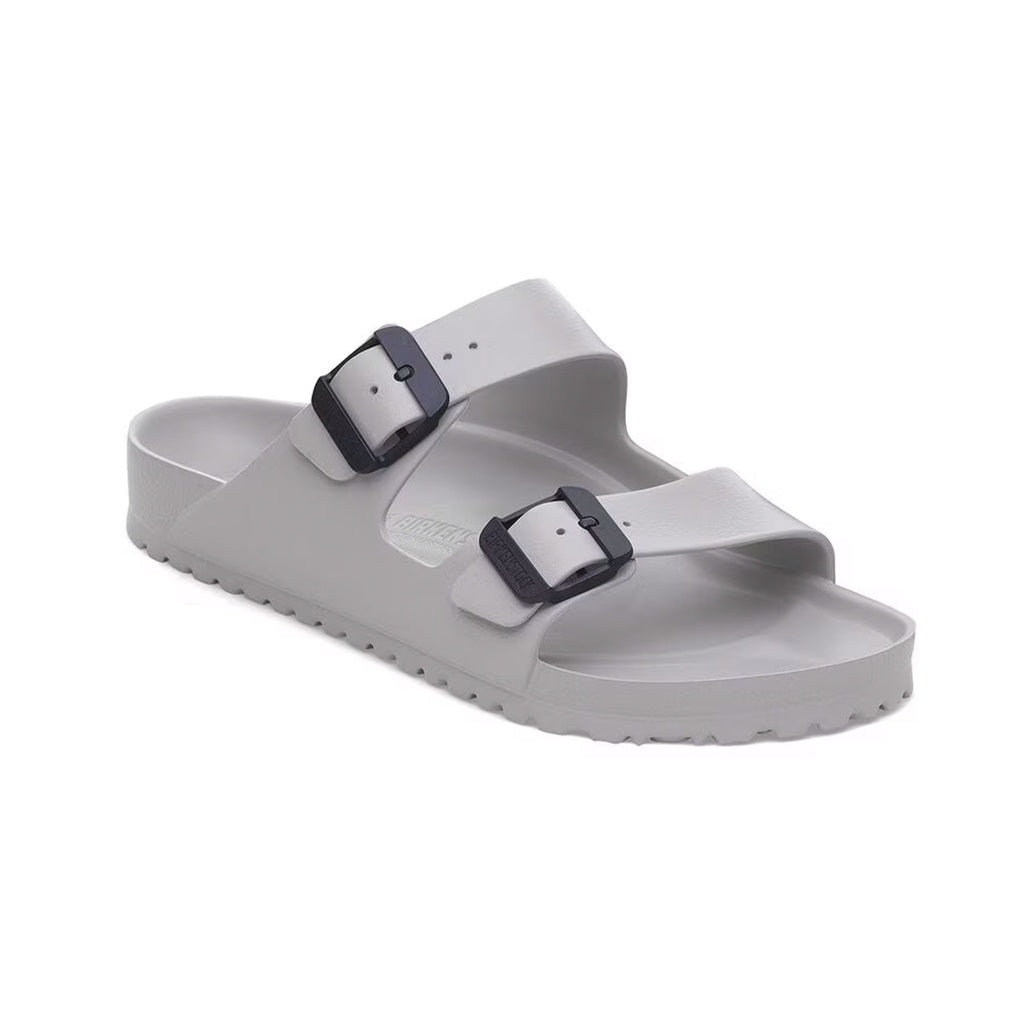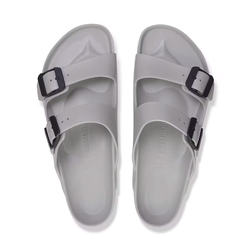 The BIRKENSTOCK Arizona is a genuine classic that has been delighting both men and women for decades. This simple sandal with two straps stands for timeless design and has long held cult status thanks to its comfort factor. This version features the modern and functional BIRKENSTOCK stealth buckle made from a stainless synthetic material and makes an impression with its durability and minimalist design. Modeled on the cork original, this sandal is made from especially light and highly flexible EVA. This high-quality, odor-neutral synthetic material which has been tested for harmful substances is shock-absorbent, water-resistant, and skin-friendly. It’s therefore perfect for the beach, the garden, or wellness and spa areas.