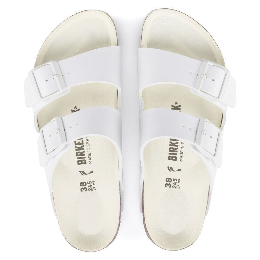 The legendary two-strap design from BIRKENSTOCK - the Arizona. Iconic style complemented with the signature comfort of the BIRKENSTOCK footbed. The color-coordinated microfiber footbed liner rounds off the shoe’s look of sophistication. The upper is made from the skin-friendly, hard-wearing synthetic material Birko-Flor®.
