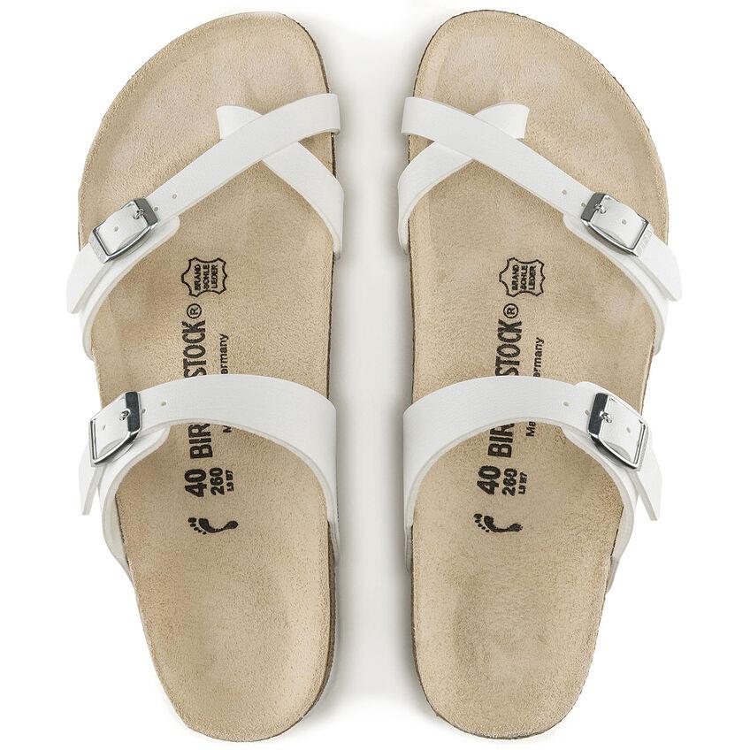 The Mayari from BIRKENSTOCK - an elegantly comfortable sandal with adjustable, crisscrossing straps that form a single loop around the toe. Classic support and adjustability, designed beautifully. Shown in Birko-Flor®.