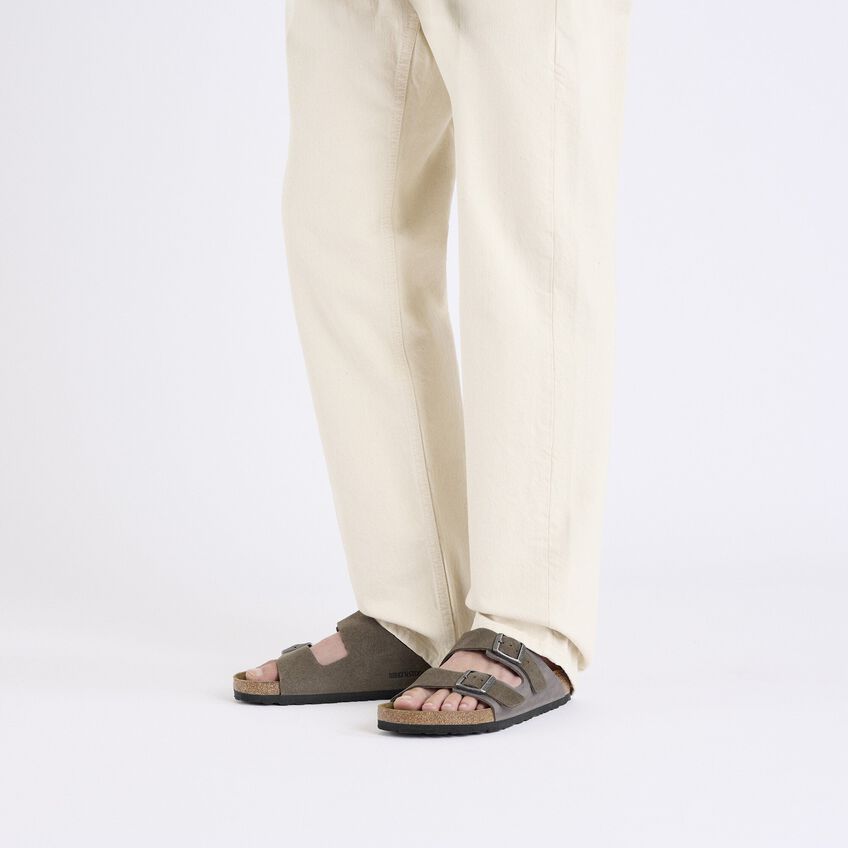 The BIRKENSTOCK Arizona is a genuine classic that has been delighting both men and women for decades. This simple sandal with two straps stands for timeless design and has long held cult status thanks to its comfort factor. The upper is made from especially soft suede which hugs the foot like a second skin. The two straps are made from extra thick, oiled nubuck leather with an open-selvage finish.