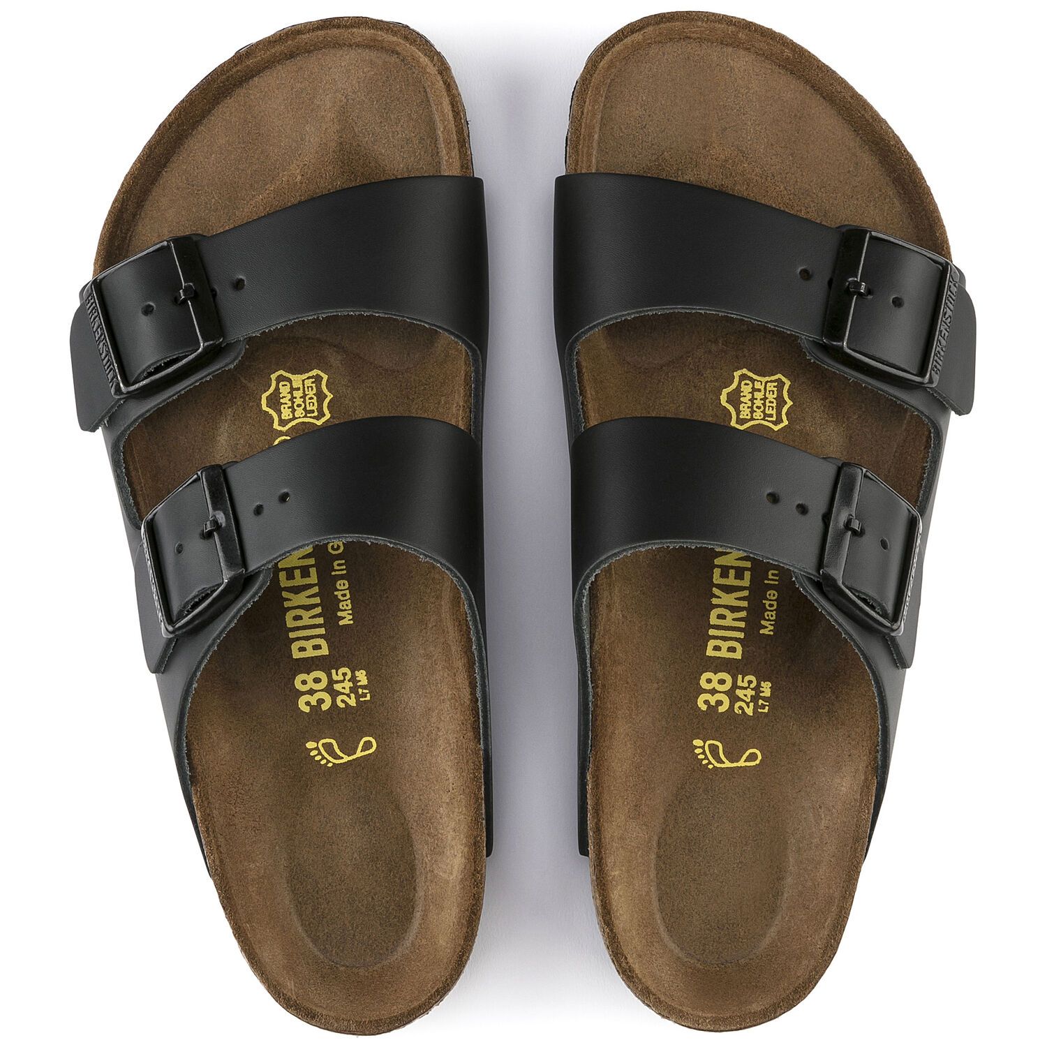 The BIRKENSTOCK Arizona is a genuine classic. This individually adjustable unisex two-strap sandal is now available in a uniquely sophisticated leather version. The leather features an open selvedge finish, emphasizing the handcrafted and natural look of these stylish sandals.