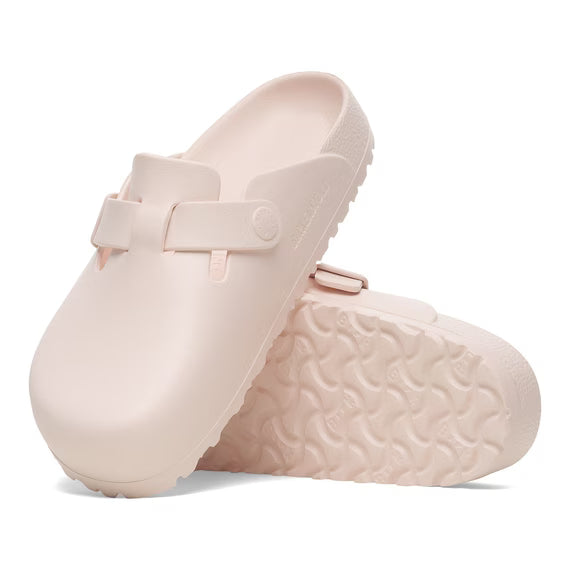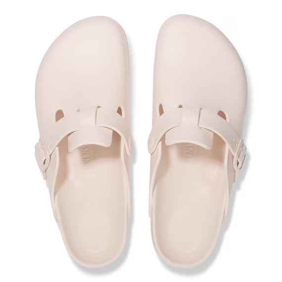 The BIRKENSTOCK Boston is a veritable classic that can easily be worn all year round. The Boston has a legendary status thanks to its sophisticated, individual design. Modeled on the cork sandal, it is made from the ultra lightweight and highly flexible synthetic material EVA. The high-quality, odor-neutral EVA has been tested for harmful substances and combines numerous positive attributes: it is very light, highly elastic, shock-absorbent, waterproof, and skin-friendly.
