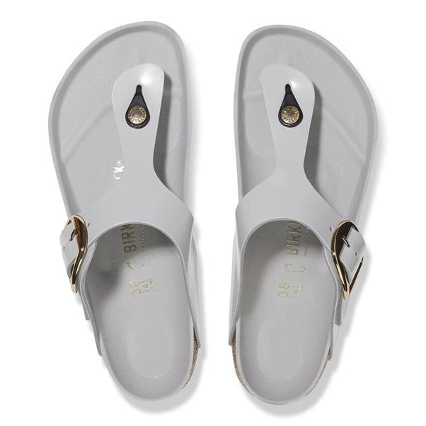 The Gizeh sandal refines the fit with legendary comfort and elegant detailing. This design doubles the buckle and ups the shine with gleaming, oversized hardware and a glossy finish. The style is grounded in our original contoured footbed, designed to shape to you for the ultimate in custom support.