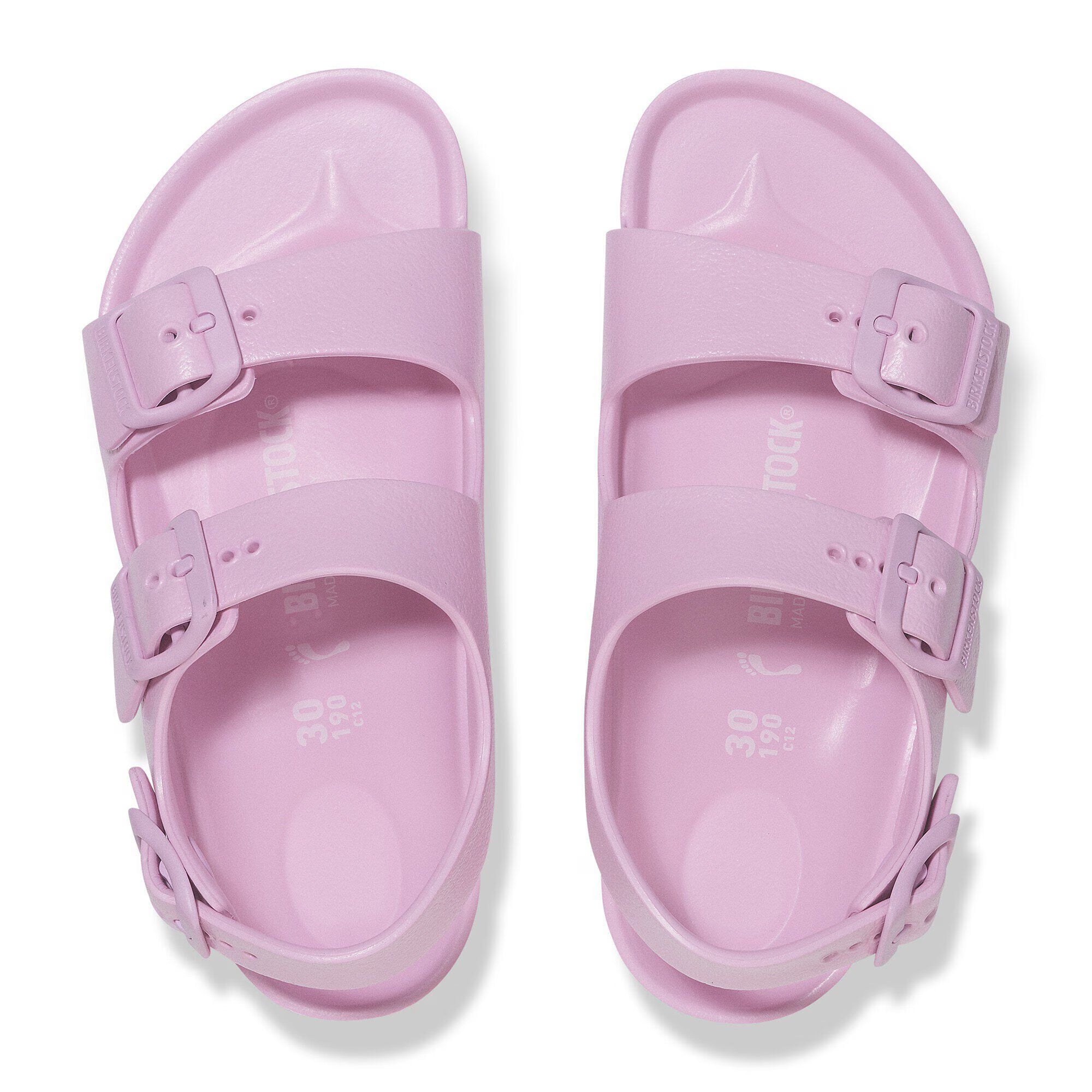 The BIRKENSTOCK Milano - a classic back-strap sandal with functional style for kids. Modeled on the cork original, this back-strap sandal is made from ultra lightweight and highly flexible EVA. These sandals are shock absorbing, waterproof, and skin-friendly. Wear them at the beach, in the backyard, or by the pool. Sandals for all-day play!
