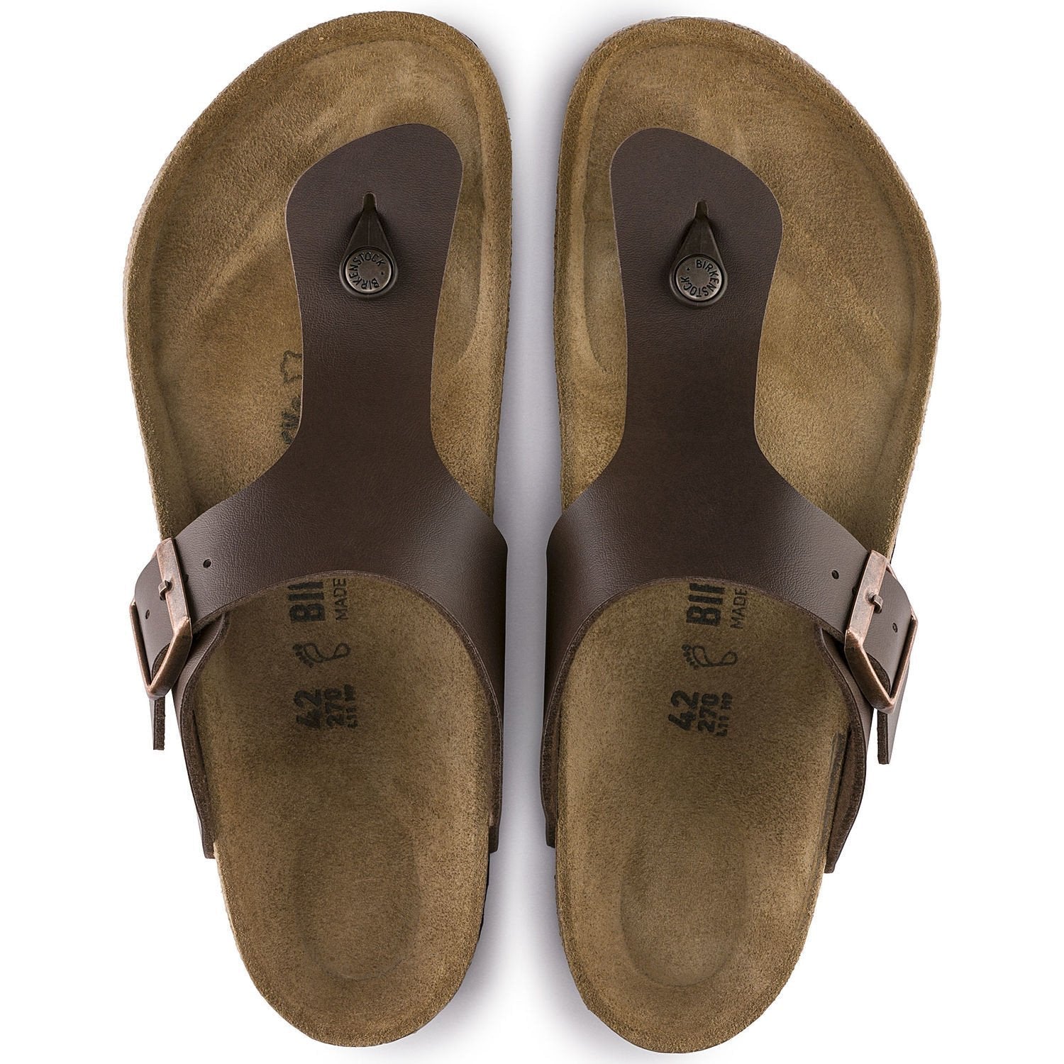 The BIRKENSTOCK Ramses is the men’s version of the popular Gizeh thong sandal. The slightly wider strap lends this sandal a strikingly masculine appearance. The upper is made from the skin-friendly, hard-wearing synthetic material Birko-Flor®.
