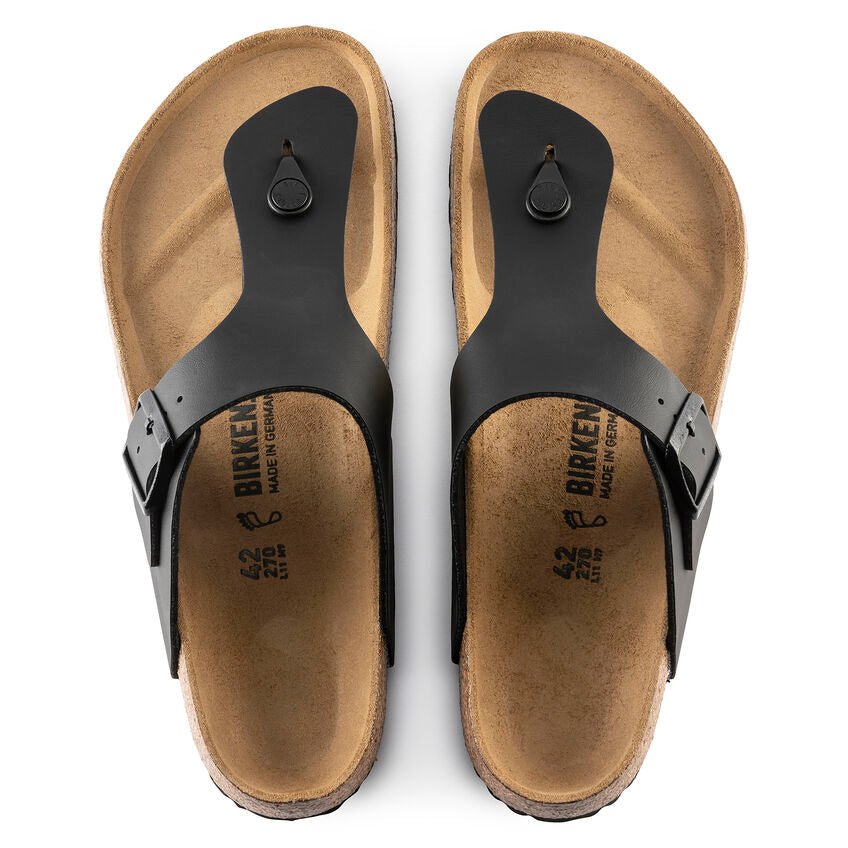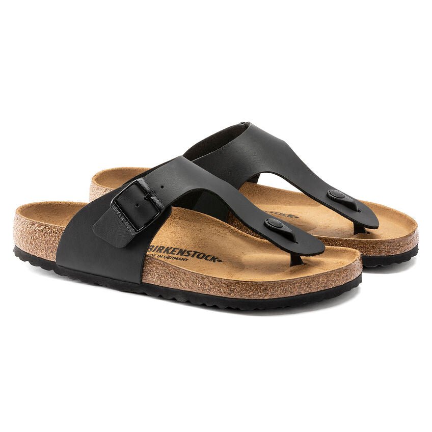 The BIRKENSTOCK Ramses is the men’s version of the popular Gizeh thong sandal. The slightly wider strap lends this sandal a strikingly masculine appearance. The upper is made from the skin-friendly, hard-wearing synthetic material Birko-Flor®.