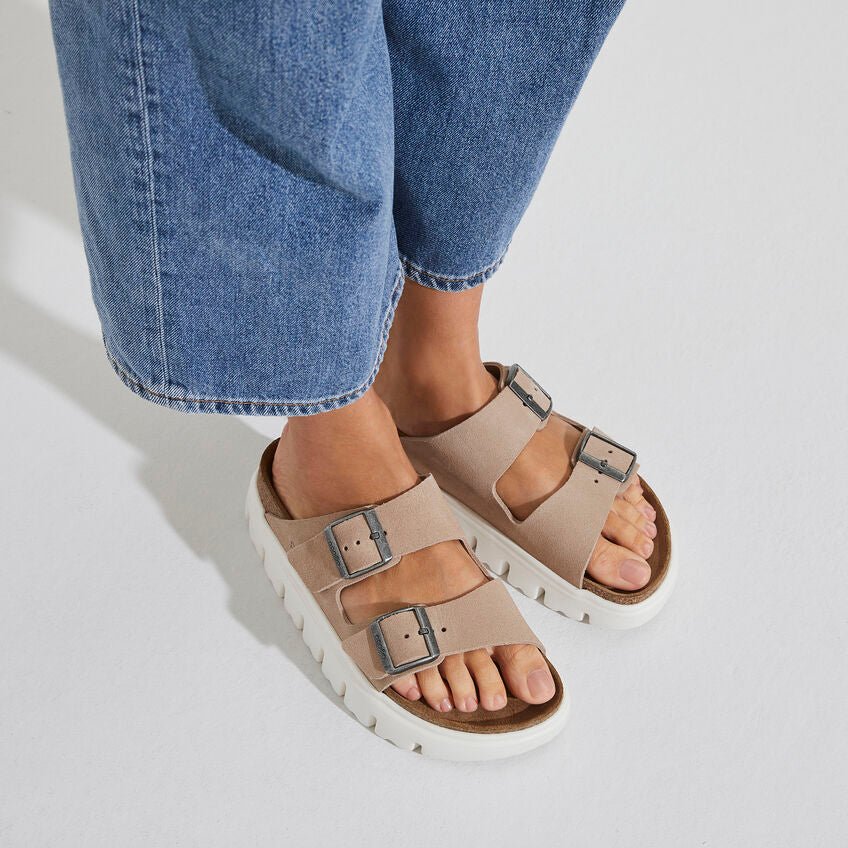 The Arizona Papillio combines two of our most classic styles. Featuring the classic two-straps from the Arizona and a stylish platform sole with extra deep tread line from the Papillio, you're guaranteed to stay comfortable and look stylish all day long. The upper is made from especially soft suede.