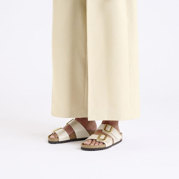 The BIRKENSTOCK Sydney proves that fashion and functionality can go hand in hand. With its two simple straps, it’s a real hit with women who want both high fashion and comfort. This sandal version has a silky sheen finish. The shiny, gently rounded padded buckles are especially eye-catching. The upper is made from the skin-friendly, hard-wearing synthetic material Birko-Flor®.